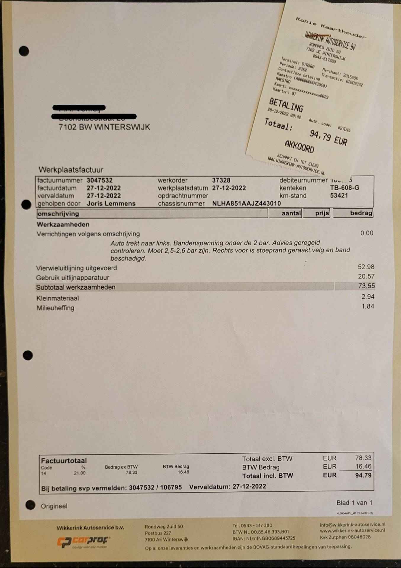 - de APK keuring indien deze binnen drie maanden afloopt