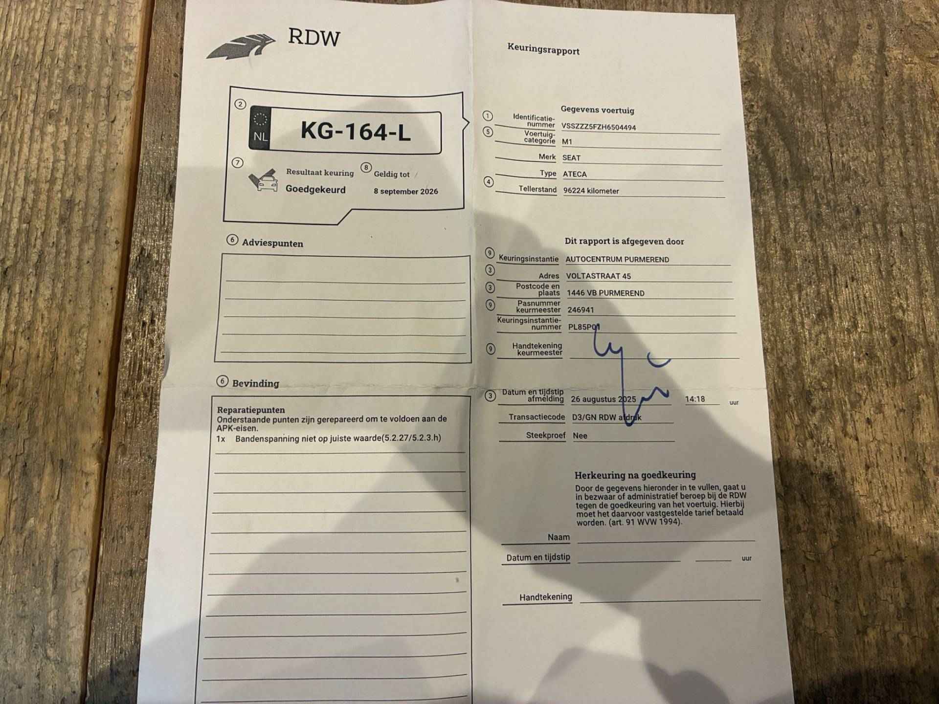 - de APK keuring indien deze binnen drie maanden afloopt