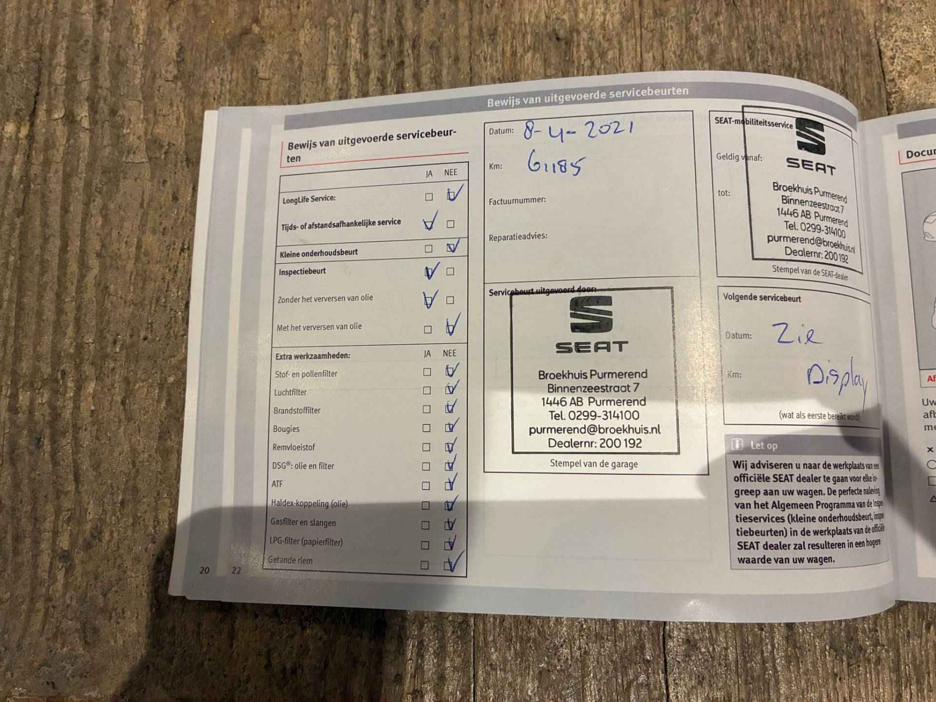 - een onderhoudsbeurt volgens fabrieksvoorschrift